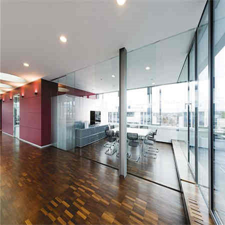 隔音:现代办公环境对空间提出了更高的要求:既要目光交流,又能享受到私密的空间,而现在存在影响工作的效率的最大的罪魁祸首就是噪音,因此空间的隔音性能就显的特别重要,在玻璃模块的连接处,应用精密的型材组件,使玻璃隔断墙体具有良好隔音性能。